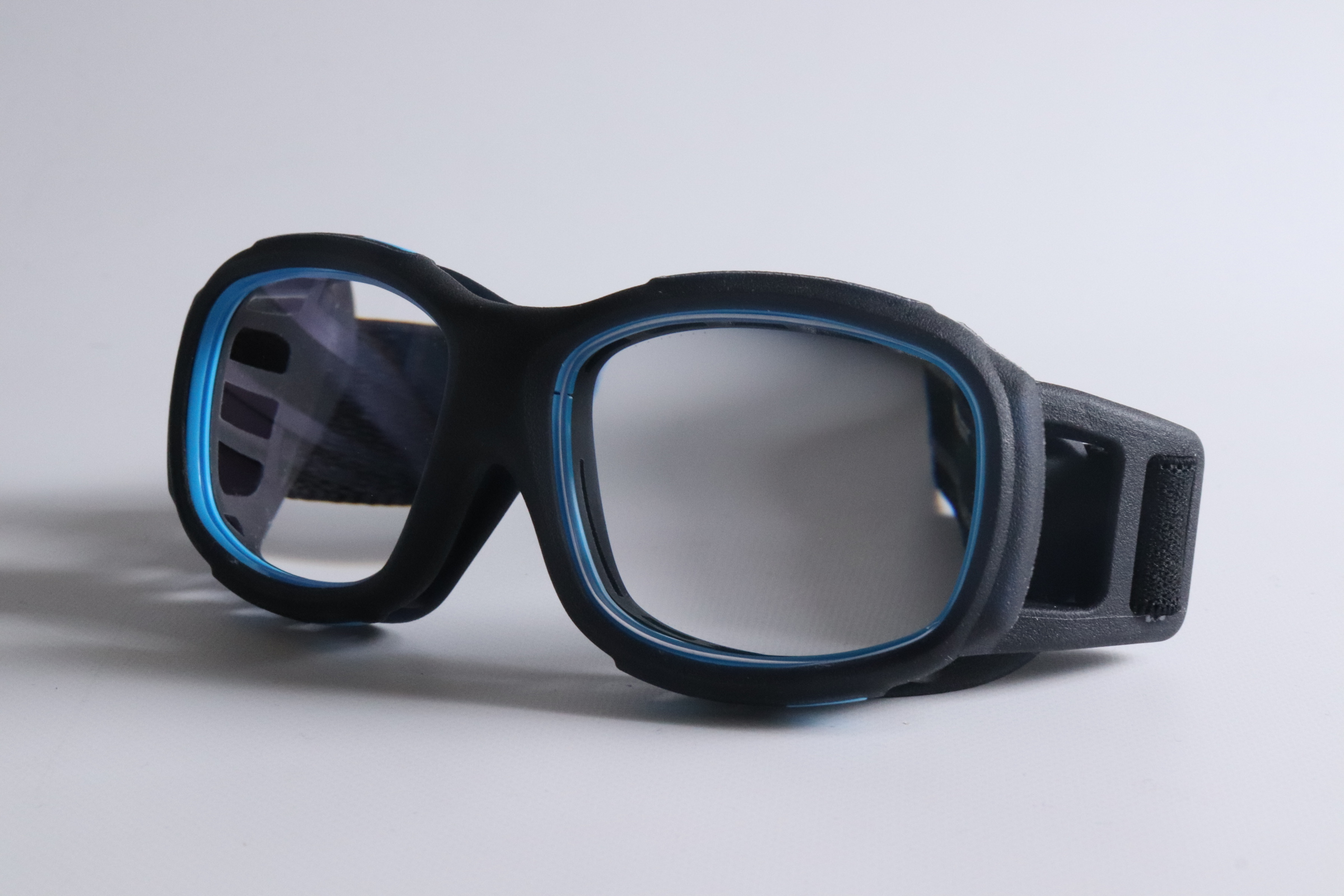 ピボーテはエラストマー製ソフトフレームに、硬質レンズ保持フレームを装着するという全く新しい構造をしています。3Dプリンタモデルに迫る通気性と、ハードフレームモデルと同基準の安全性が両立されているのが魅力です。
