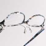 神戸市よりご来店【跳ね上げメガネのプロショップ】女性用セルフレームの単式跳ね上げメガネ。マーブルブルーの生地がおしゃれなフレームです。老眼対策に便利な跳ね上げメガネ。単式跳ね上げ・複式跳ね上げ・レディース跳ね上げと様々な跳ね上げメガネを集めています。
