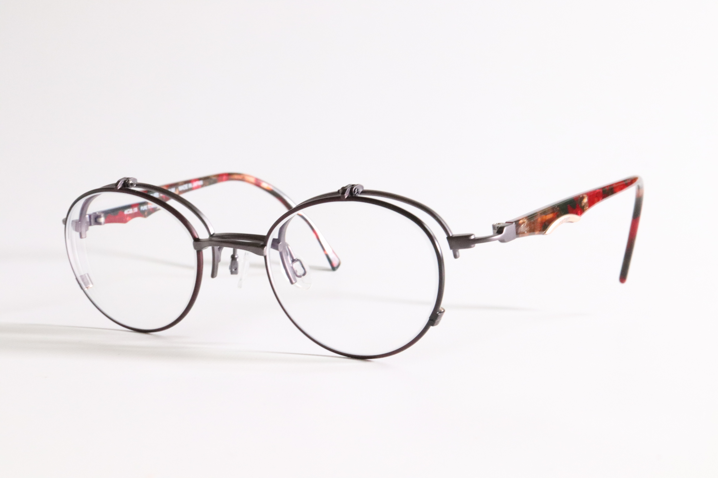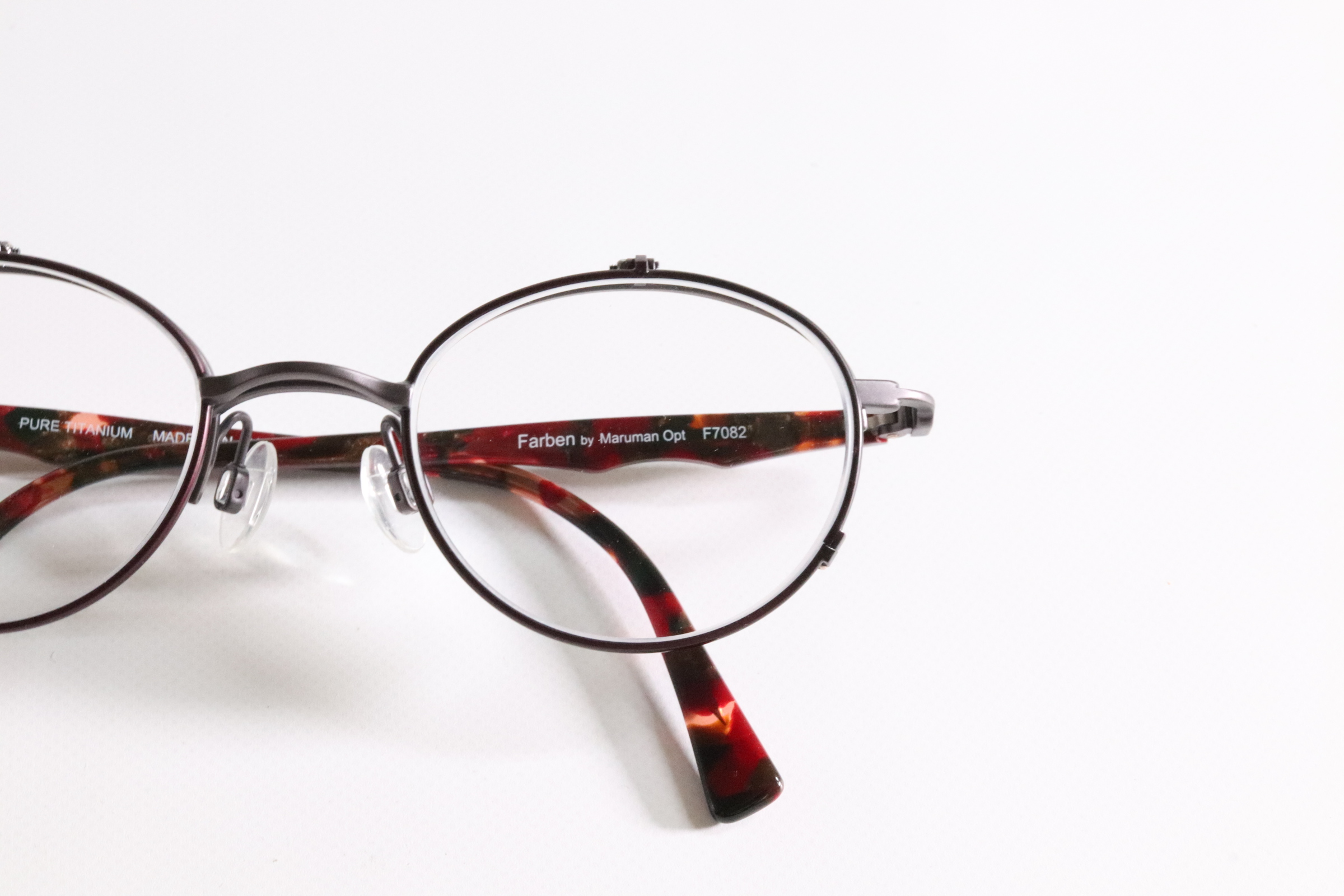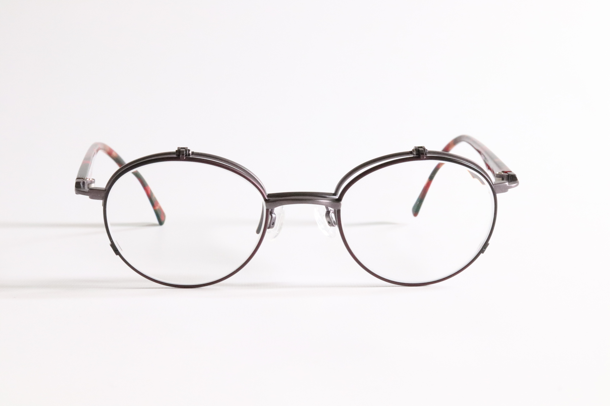 跳ね上げメガネはレンズ部分を跳ね上げることによってメガネのあり・なしを切り替えるメガネ。フリップアップとも呼はれています。