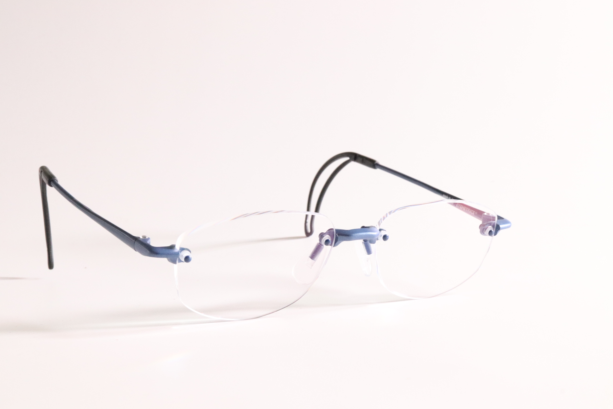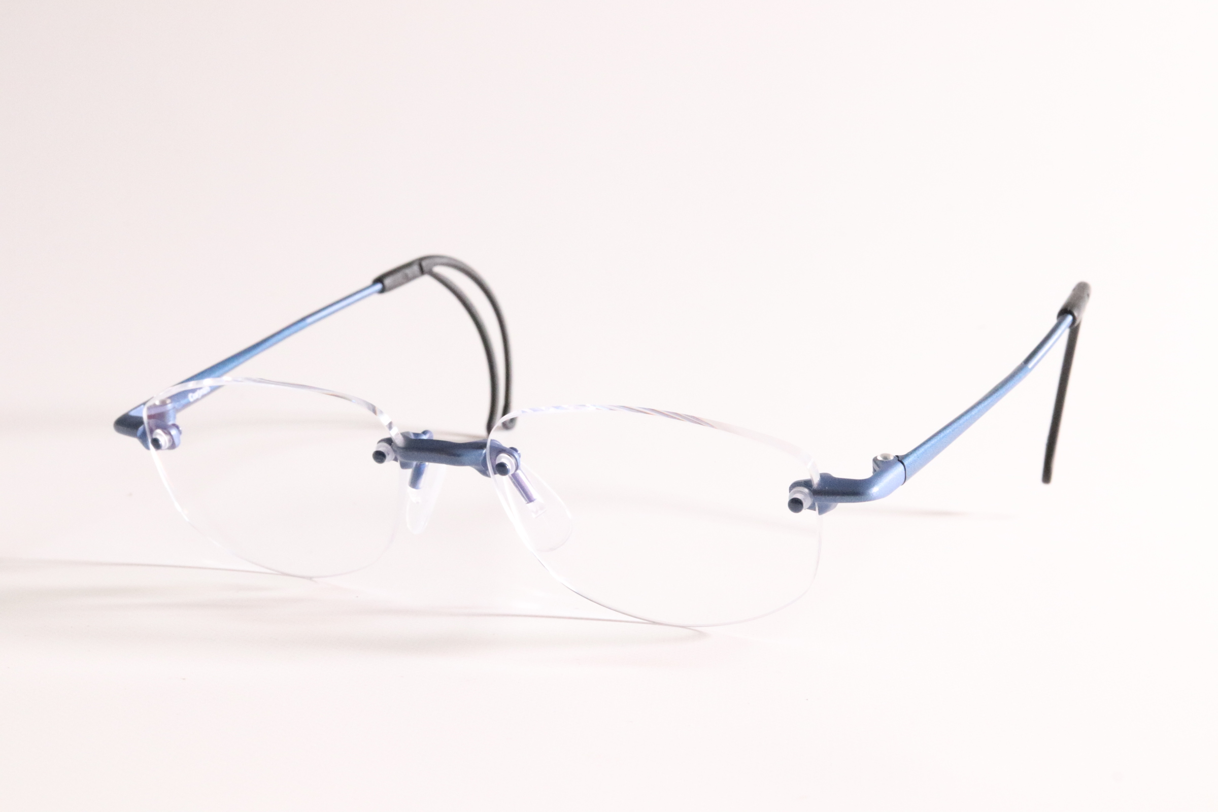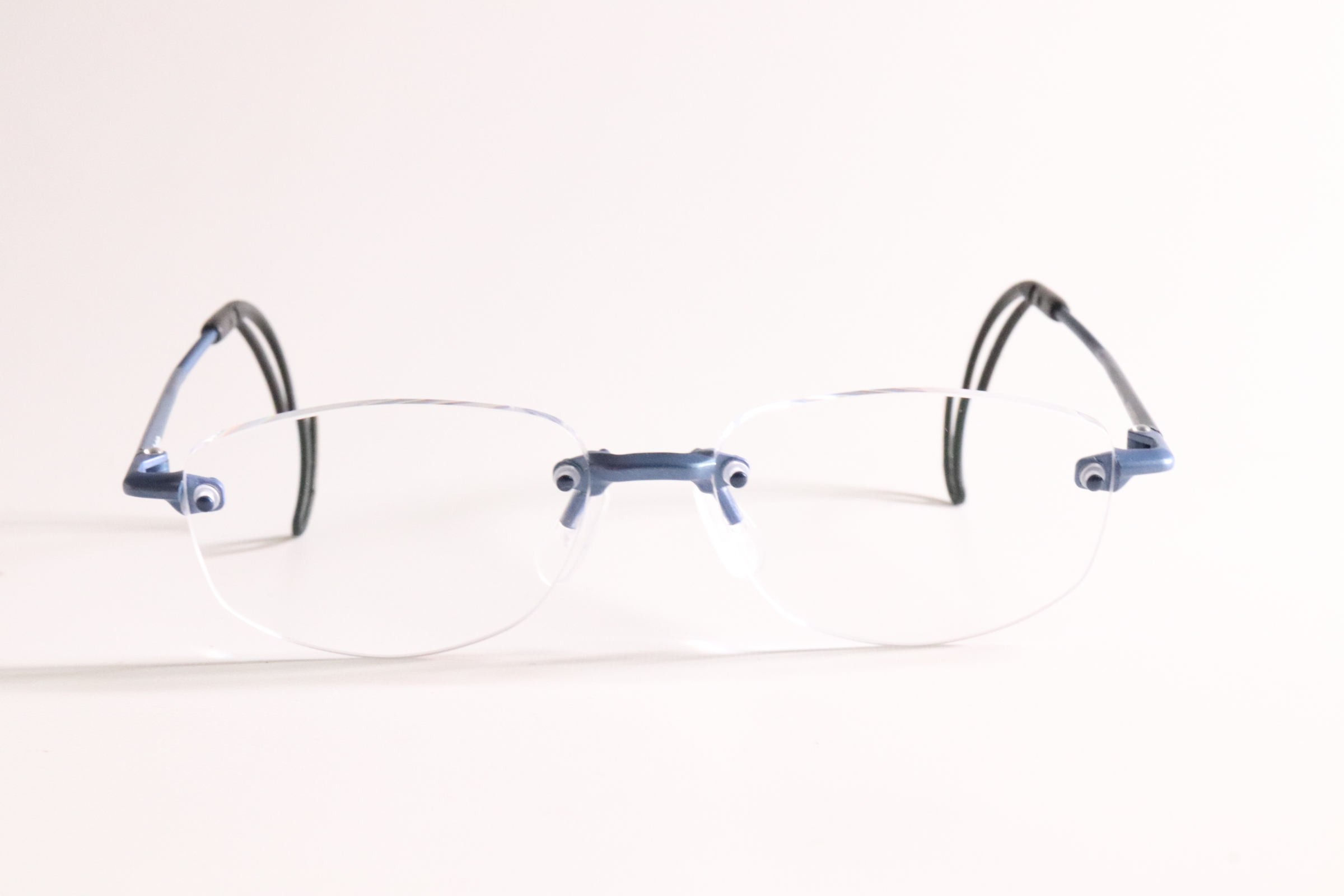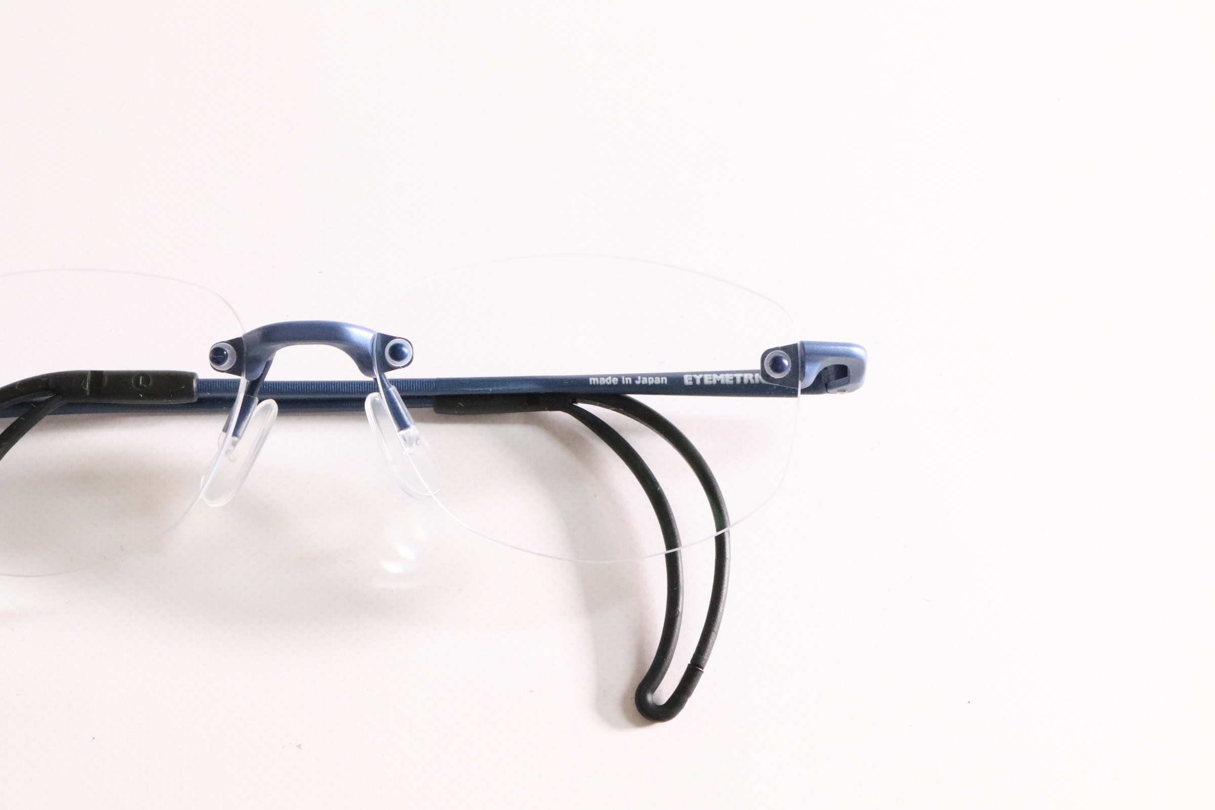 大阪市よりご来店【アイメトリクス取扱い店】コリントのダークブルーで製作。老眼対策の遠近両用レンズを装着しました。