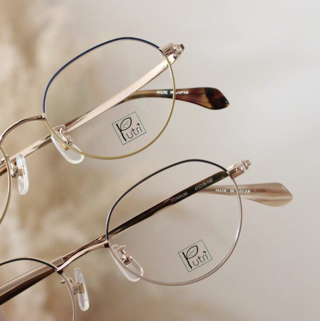 やや丸みを帯びたクラウンパントシェイプのアイウェア。
