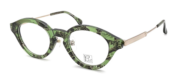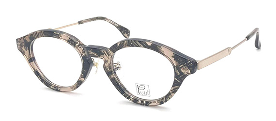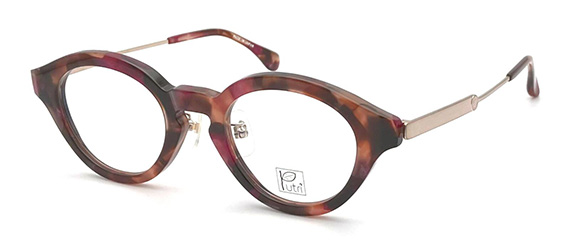 Putriにしては珍しいボリューミーなフロントアセテートのコンビフレーム。印象的なフロントシェイプと異なる雰囲気のアセテート生地が、お顔全体と目元周りにたっぷりアクセントを与えてくれます。