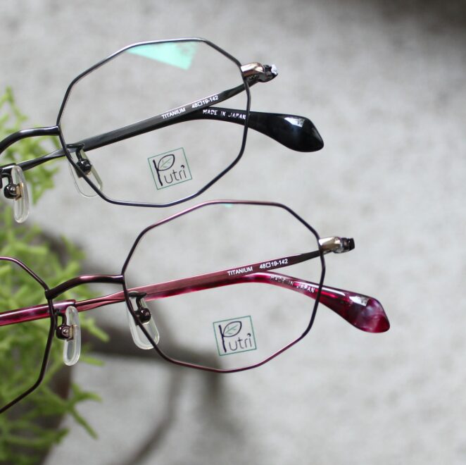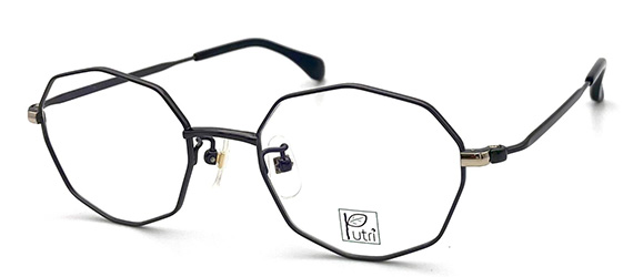 カクカク感の11角形のフロントシェイプが楽しめるシンプルなメタルフレーム。これまた掛けてみると不思議とお顔に馴染みます。
