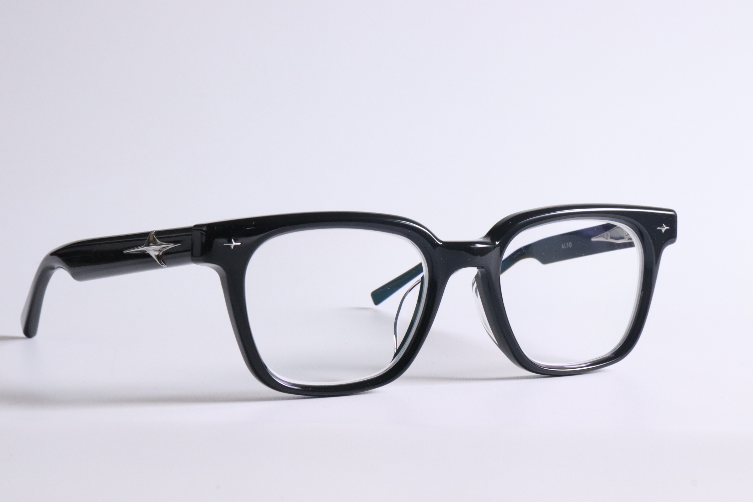 Alto 01は、直線的で洗練されたシルエットが特徴の人気モデル。フラットに近いレンズ設計を前提としたデザインのため、レンズの選び方次第で仕上がりの印象が大きく変わります。