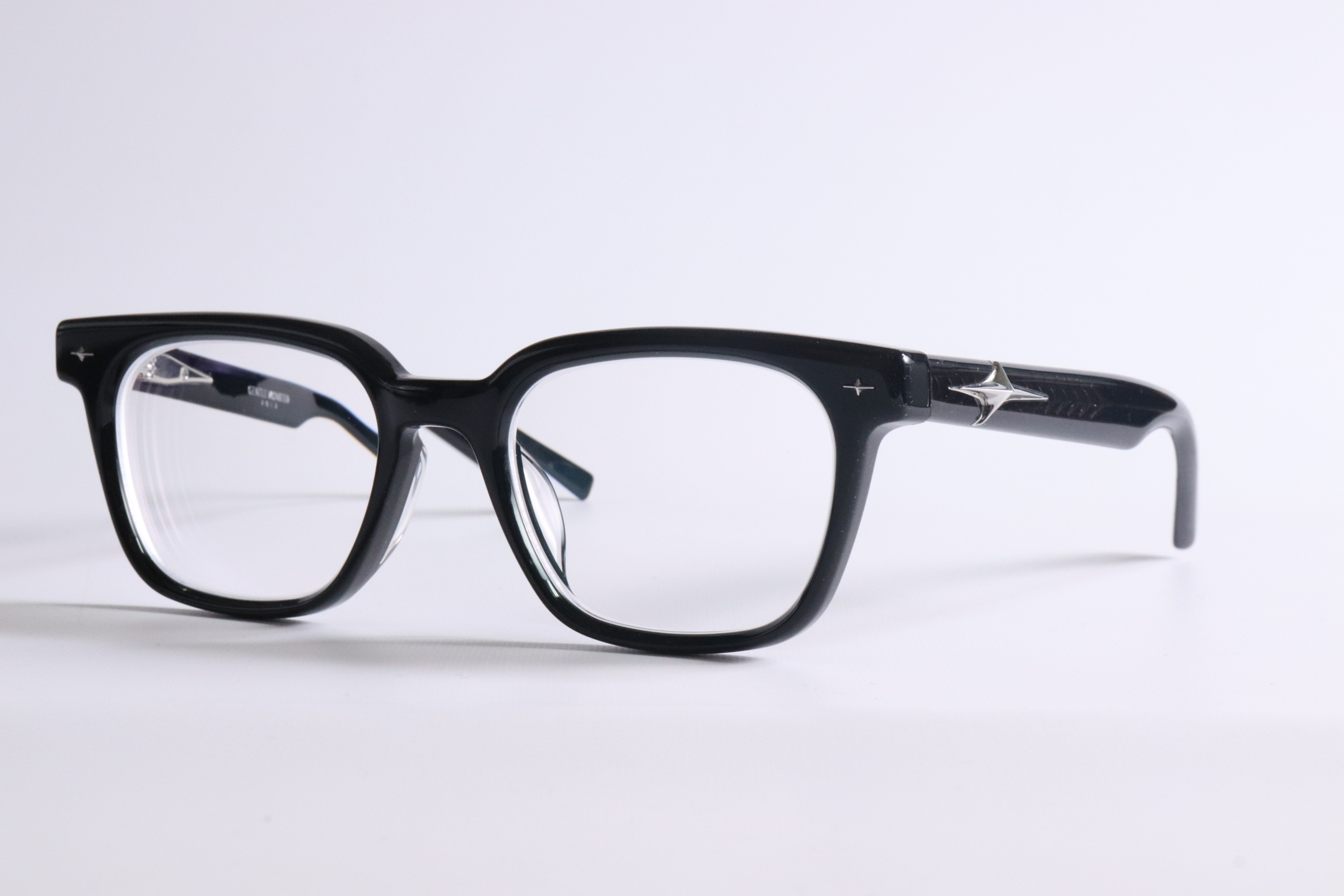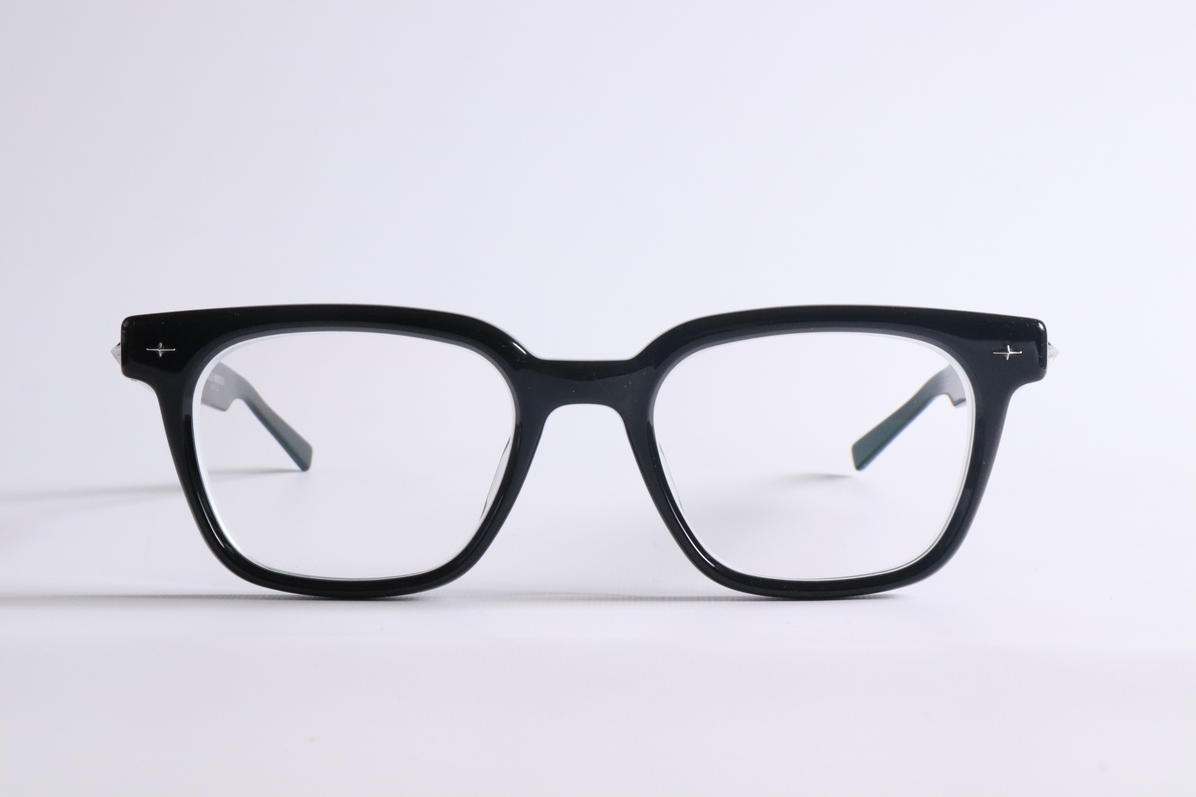 ブラックアセテートのスクエアメガネフレーム。