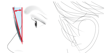 フレームカーブやフレームの種類等によりフレームそり角は異なり、視線とレンズが交差する角度が見え方に影響します。適正な数値入力により収差を補正。側方視してもスムーズな見やすさを提供します。