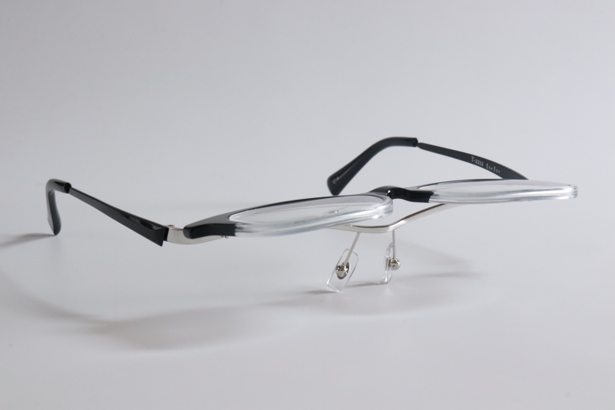 単式跳ね上げは、レンズ部分を上に持ち上げることで、瞬時に裸眼視へ切り替えられる構造。