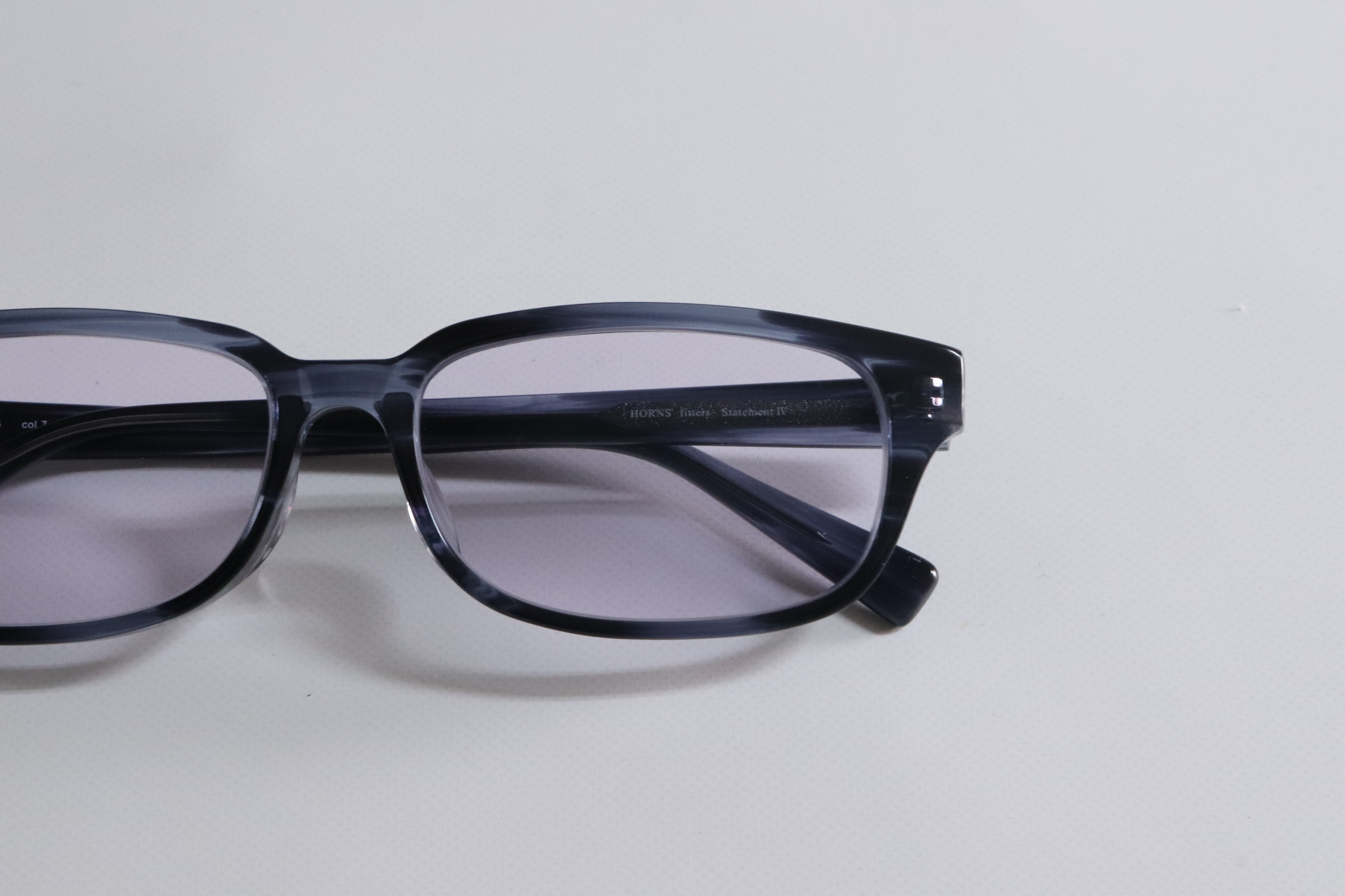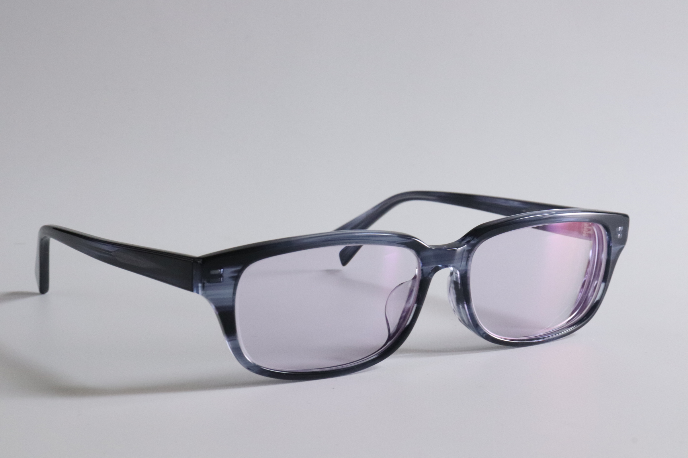 【大きいサイズのセルフレーム×遠近両用】ゆったりスクエアフレームにタレックス モアイパープルをセット。今回は、大きいサイズのスクエアシェイプのセルフレームにタレックスのモアイパープル遠近両用レンズを組み合わせた製作事例です。