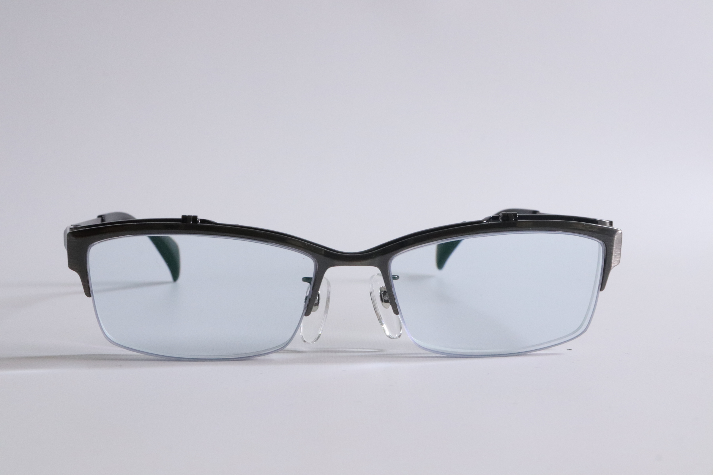 複式跳ね上げメガネは、レンズが二重構造になっている跳ね上げ式メガネです。通常のレンズの前に、もう一枚レンズが付いており、用途に応じて前側レンズを跳ね上げて使います。「見る距離や作業内容に応じて、メガネを切り替えたい」そんな方に選ばれている、少し特殊だけど実用性の高いメガネです。