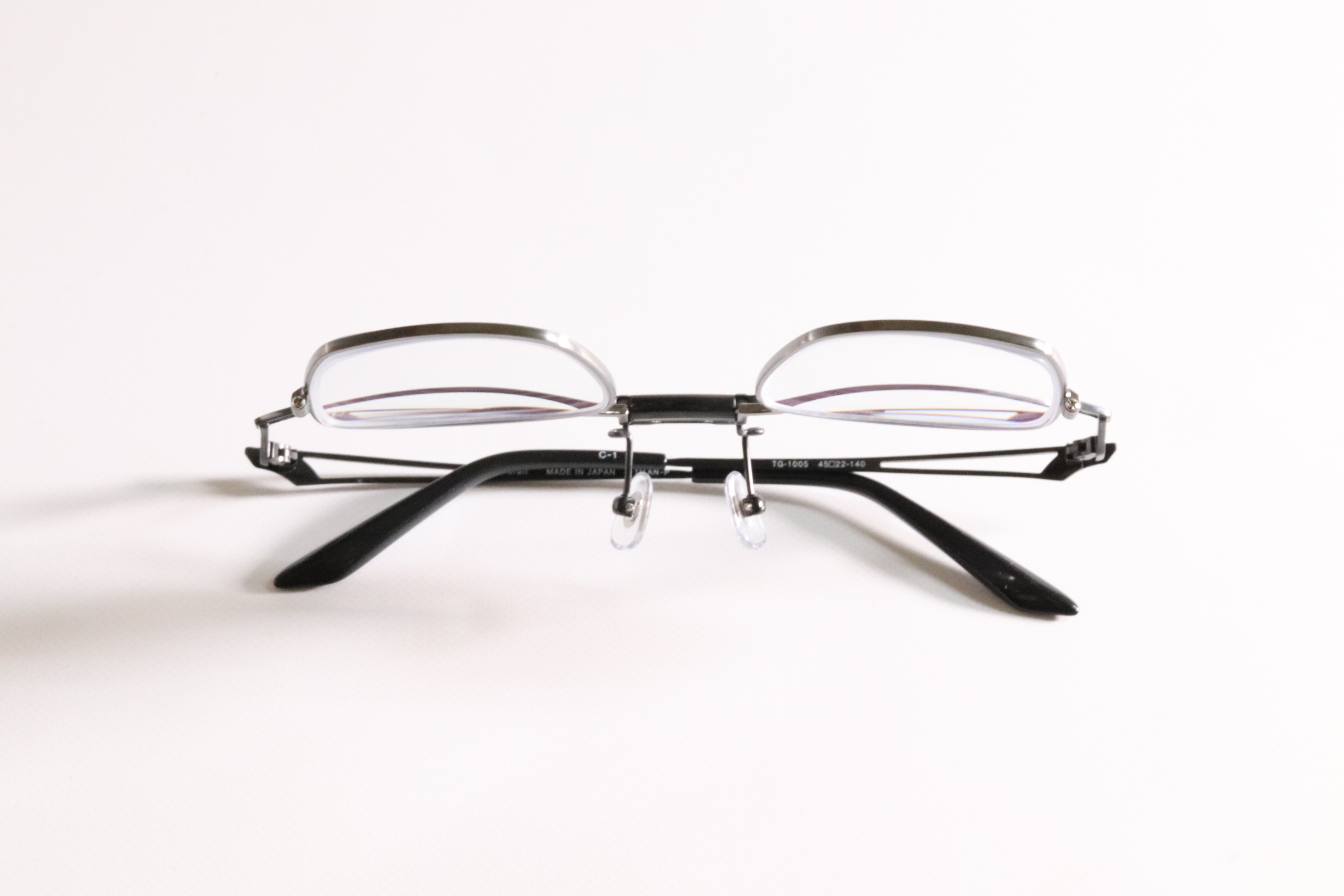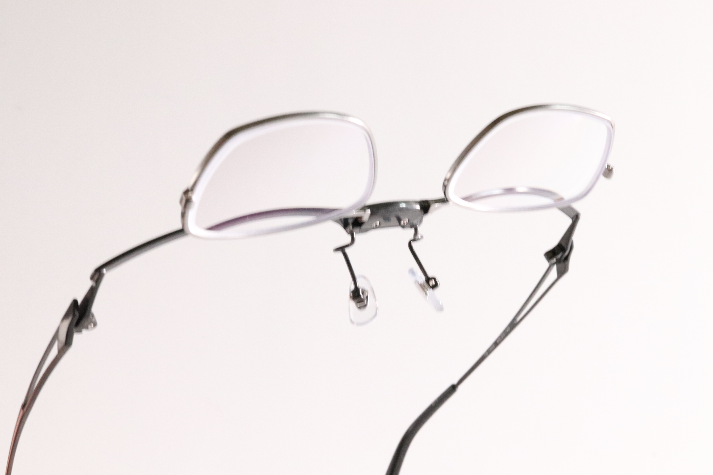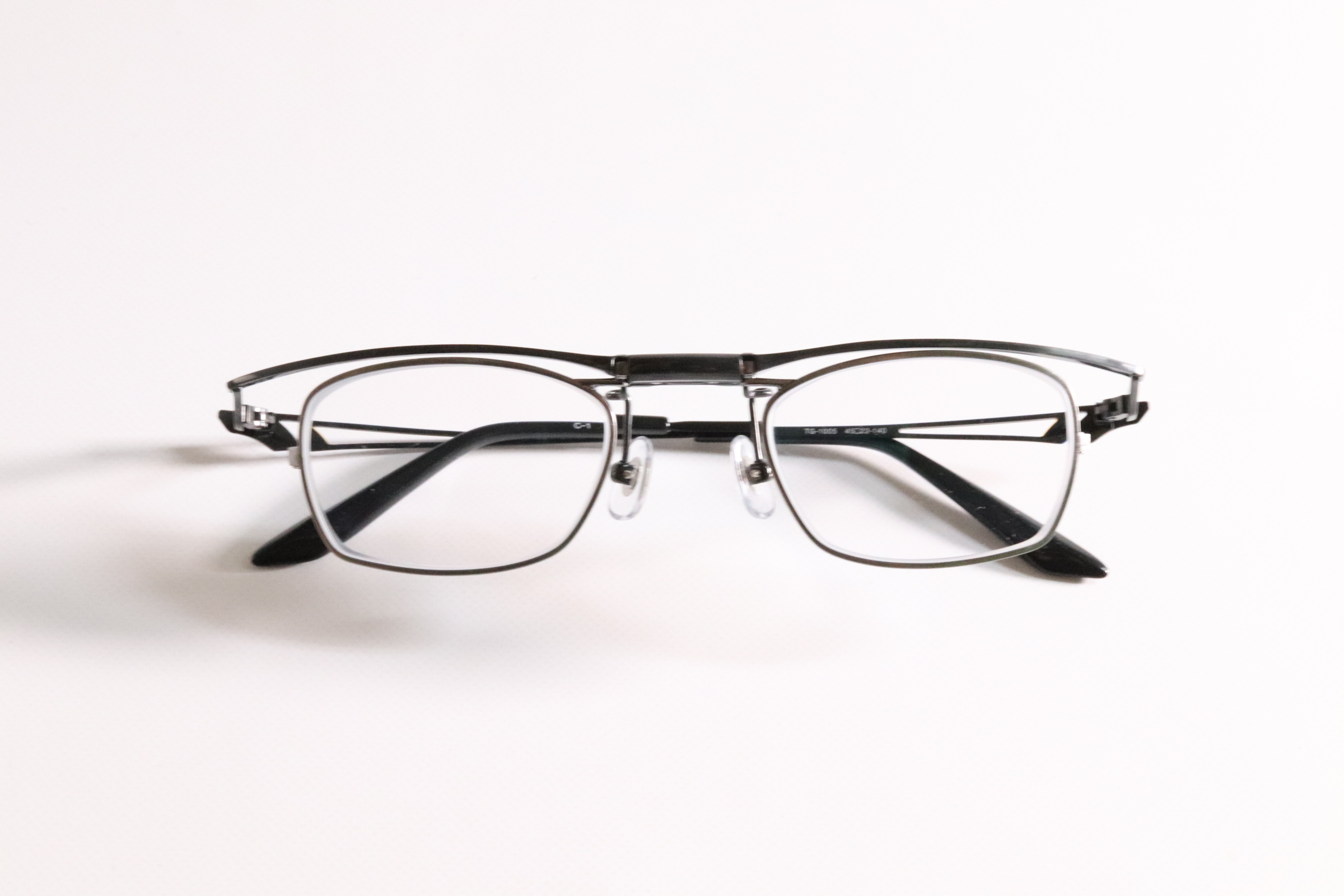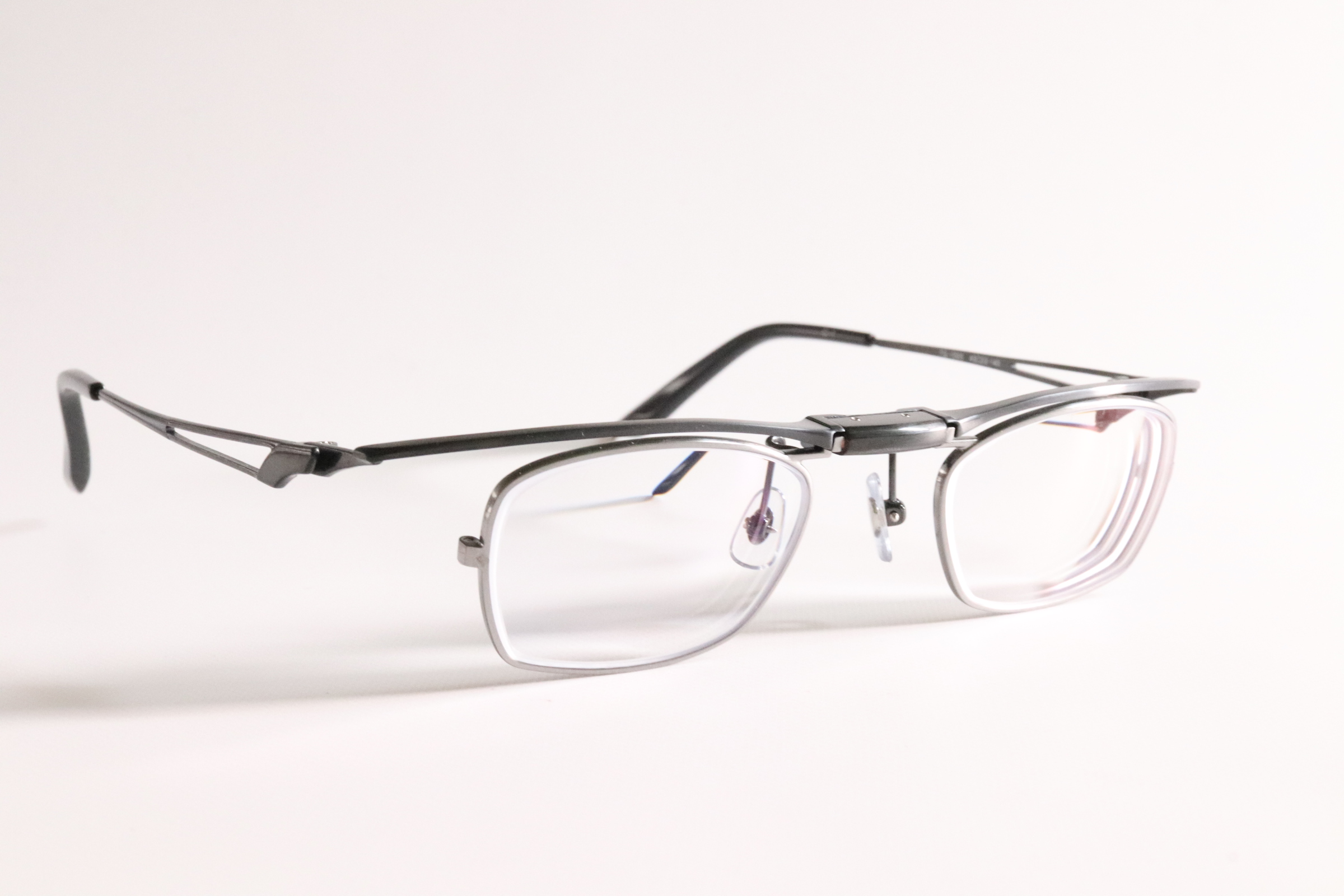 特許取得のバネ式スクエア跳ね上げメガネ。
