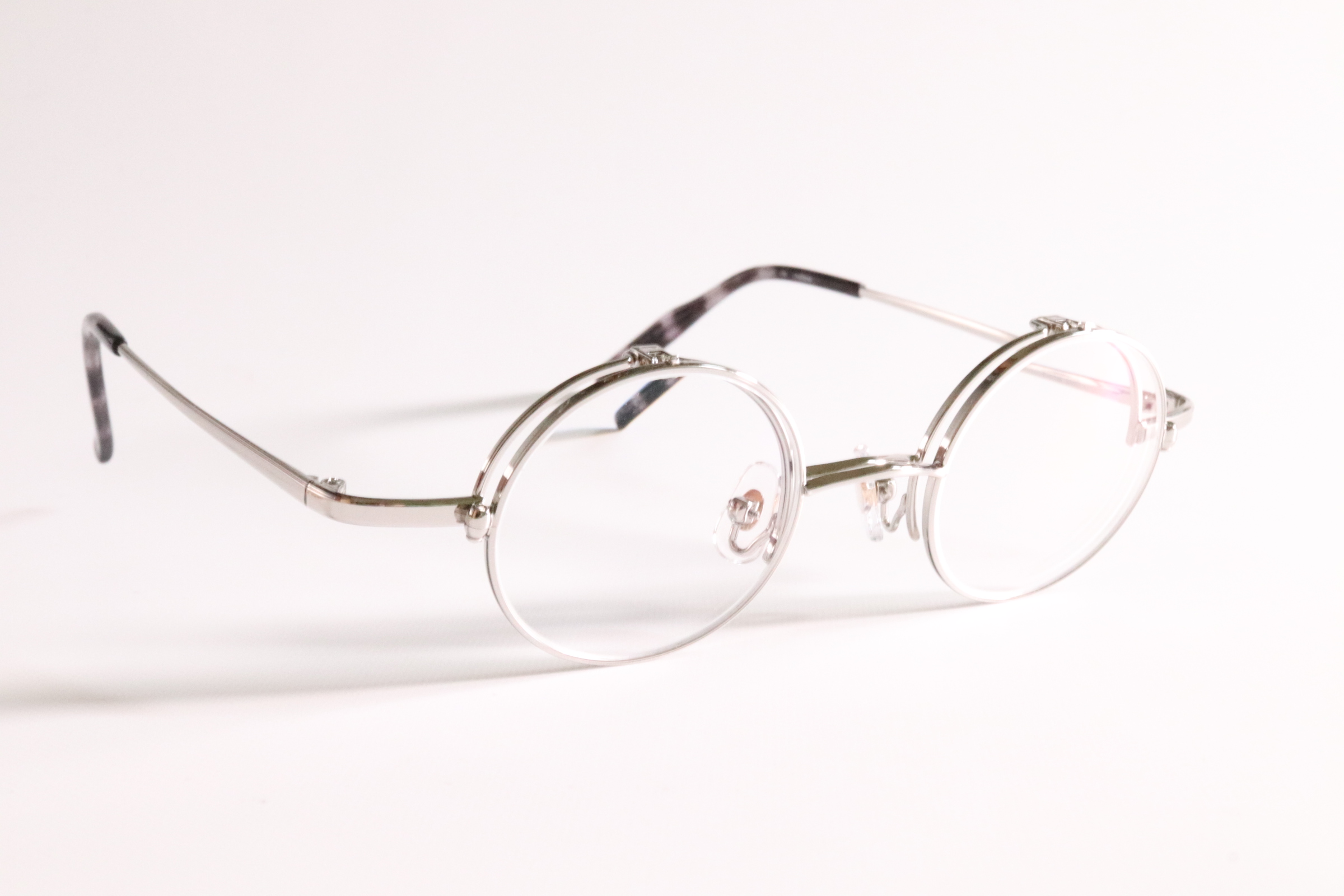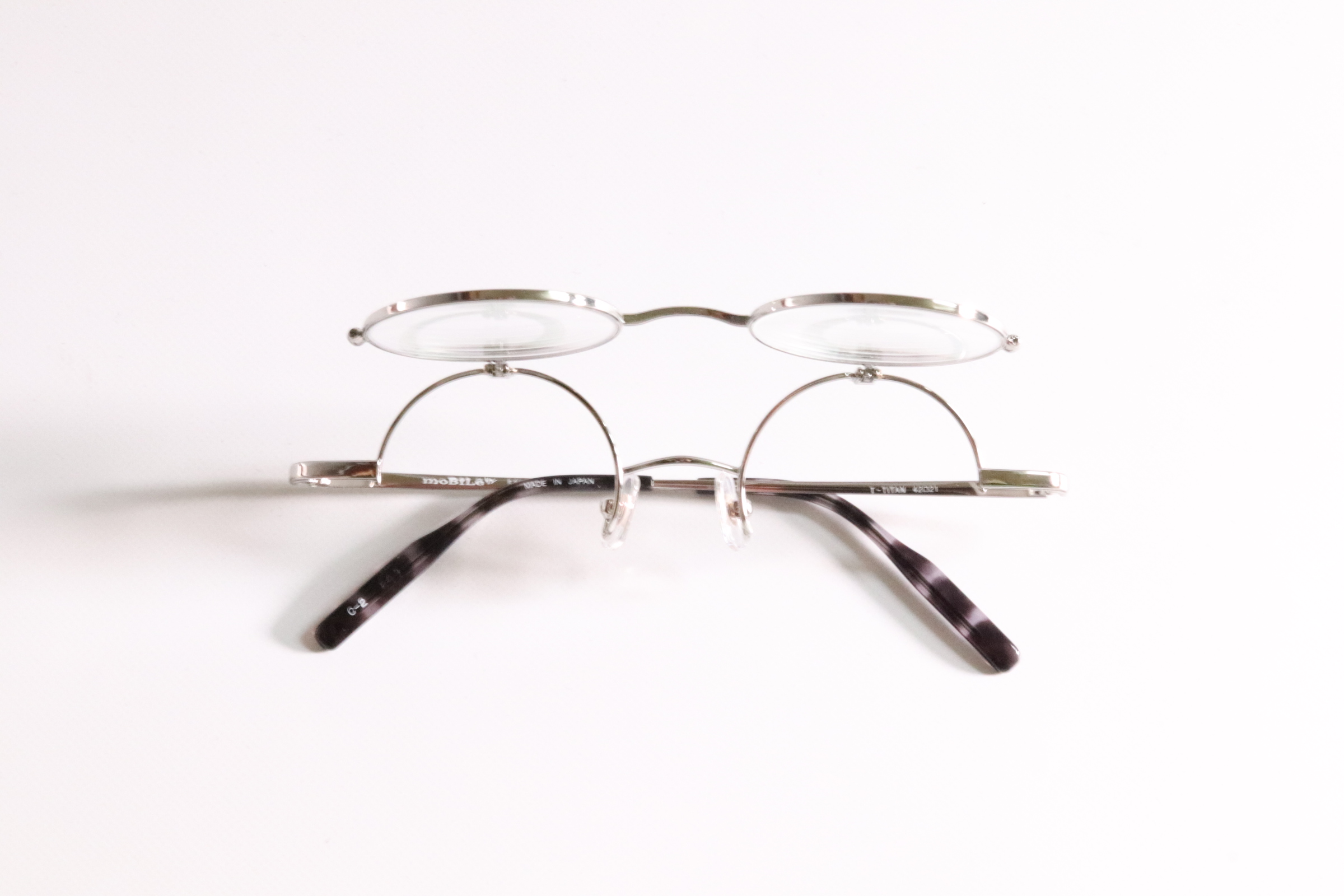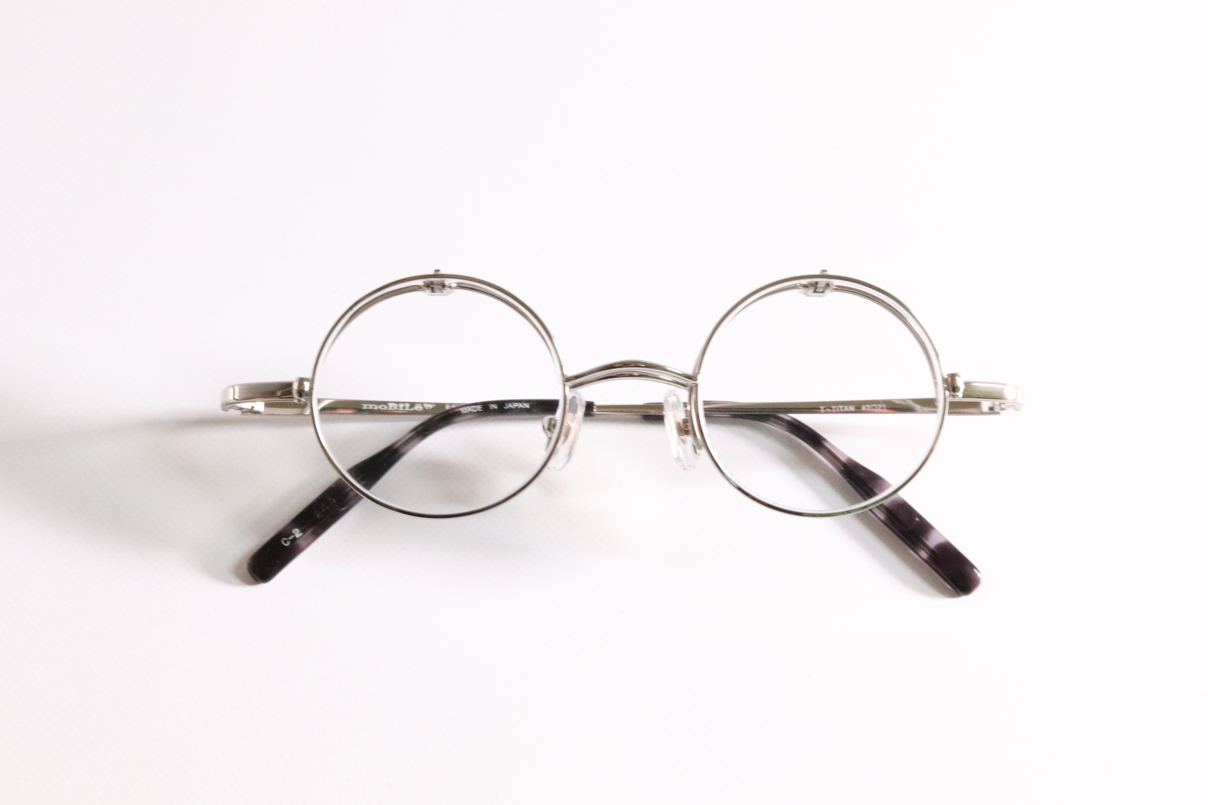 ラウンドシリーズの単式跳ね上げメガネ。